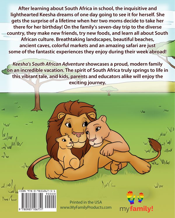 ***OUT OF STOCK*** After learning about South Africa in school, the inquisitive and lighthearted Keesha dreams of one day going to see it for herself. She gets the surprise of a lifetime when her two moms decide to take her there for her birthday! On the family’s seven-day trip to the diverse country, they make new friends, try new foods, and learn all about South African culture. Breathtaking landscapes, beautiful beaches, ancient caves, colorful markets and an amazing safari are just some of the fantastic experiences they enjoy during their week abroad!